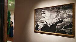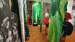 Die Ausstellung der Künstlerin und Kulturgeografin Juliane Vowinckel und des Foto- und Videografen Marco Borowski zeigt den Wald in seiner ganzen Spannbreite: Einerseits als lebendigen Organismus voller Vielfalt, Biodiversität und poetischer Kraft – andererseits als verletzliches Ökosystem, das vom Klimawandel und menschlichen Eingriffen bedroht ist. Fotografien, Malerei, Skulpturen sowie Klang- und Lichtinstallationen greifen dieses Spannungsfeld auf: von stimmungsvollen Lichtspielen und unterschiedlichen Atmosphären über transparente Bahnen bis hin zu einer eindrücklichen Skulptur, die das Waldsterben erfahrbar macht.