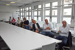 Im Anschluss dazu besichtigte die Delegation die Anlage zur Entalkoholisierung bei der Firma Carl Jung in Rüdesheim, am Nachmittag war sie zurück auf dem Campus: Im Eibinger Weg erhielten die Gäste Einblick in die Forschung des Instituts für Rebenzüchtung der Hochschule Geisenheim.