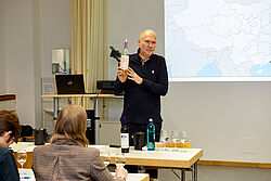 Im Rahmen der Moudle Wine and Beverage Marketing (IWB) und Wein und Getränkemarketing (IWW) war Lenz M. Moser vom Chateau Changyu Moser XV Anfang Dezember 2019 zu Gast in Geisenheim. In einer stark nachgefragten „Master Class“, in der sechs Weine verkostet wurden, brachte er Geisenheimer Studierenden das Weinbauland China näher. Im anschließenden Vortrag gab er exklusive Einblicke in die Praxis der Weinproduktion in China. Neben dem Anbau von Wein ging es in seinem Vortrag auch um die Frage, wie chinesischer Wein international erfolgreich sein kann, beispielsweise in Traditionsmärkten wie Europa.