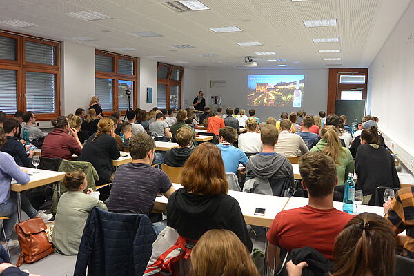 Über 70 Studierende aller Geisenheimer Studiengänge sowie interessierte Gäste lauschten auf Einladung von Prof. Dr. Kai Sparke, Leiter des Studiengangs Lebensmittellogistik und -management, seinen Ausführungen.