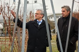 Unsere Hochschule hat ihren Schwerpunkt in Forschung und Lehre auf Wein-, Obst- und Gartenbau, der Verarbeitung der jeweiligen Erzeugnisse sowie auf die ländliche und städtische Entwicklung gelegt. Dabei stehen besonders auch Aspekte der Nachhaltigkeit, etwa bei Produktionsverfahren, und die Klima- und Umweltforschung im Fokus. Hochschul-Präsident, Prof. Dr. Hans Reiner Schultz, stellte dem Minister bei seinem Besuch das LOEWE-Forschungsprojekt FACE2FACE vor, das sich mit den Folgen des Klimawandels durch Simulation der Treibhausgas-Emission im Jahr 2050 und den notwendig werdenden Anpassungen von Sonderkulturen befasst.
