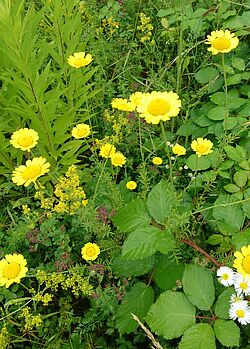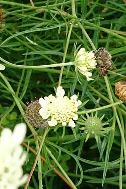 Die Tracht der Linden ist schon längst vorbei und Massentrachten wird es dieses Jahr nicht mehr geben. Da sind alle bestäubenden Insekten für eine spätblühende, artenreiche Wiese im August und September dankbar. In vielen Kleingärten ist noch Optimierungsbedarf, was die Stauden und spätblühenden Pflanzen angeht. Die wilde Möhre ist nicht nur Landeplatz für diverse Bienen, Wespen und Käfer, sondern auch Futterpflanze für die Raupen des Schwalbenschwanzes. Scabiosen und auch die Ackerwitwenblume sind ein Magnet für Honigbienen und Wildbienen, die auf der zierliche Blüte ausreichend Nektar finden. Der Dost oder auch Wilder Majoran genannt, ist über die gesamte Wiese des Irisgartens verteilt und bietet genug Futter für die verschiedensten Insekten. Auch Libellen haben den Weg an die Hochschule gefunden.