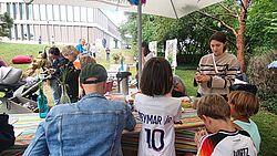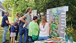 Am Infostand und der Posterausstellung konnten die Gäste einen Blick hinter die Kulissen der Institutsarbeit werfen: Wie werden Landschaften klimafit gemacht? Wie schützt man die Biodiversität? Und welche Rolle spielen Landnutzungsänderungen? Das Kompetenzzentrum Kulturlandschaft, das Netzwerk-Forum zur Biodiversitätsforschung Deutschland und das Netzwerk BioFrankfurt zeigten anschaulich, wie Forschung in der Praxis wirkt.