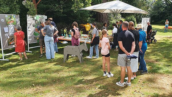 Besonders beliebt war das Mitmachangebot „Teste Deine Artenkenntnis“ mit einem Vogel- und Pflanzenquiz - Bestimmungstools zum Ausprobieren und kleine Preise weckten die Neugier. Jung und Alt konnten dabei spielerisch die Vielfalt der heimischen Tier- und Pflanzenwelt kennenlernen – ein wichtiger Baustein für Naturschutz und Landschaftsplanung.