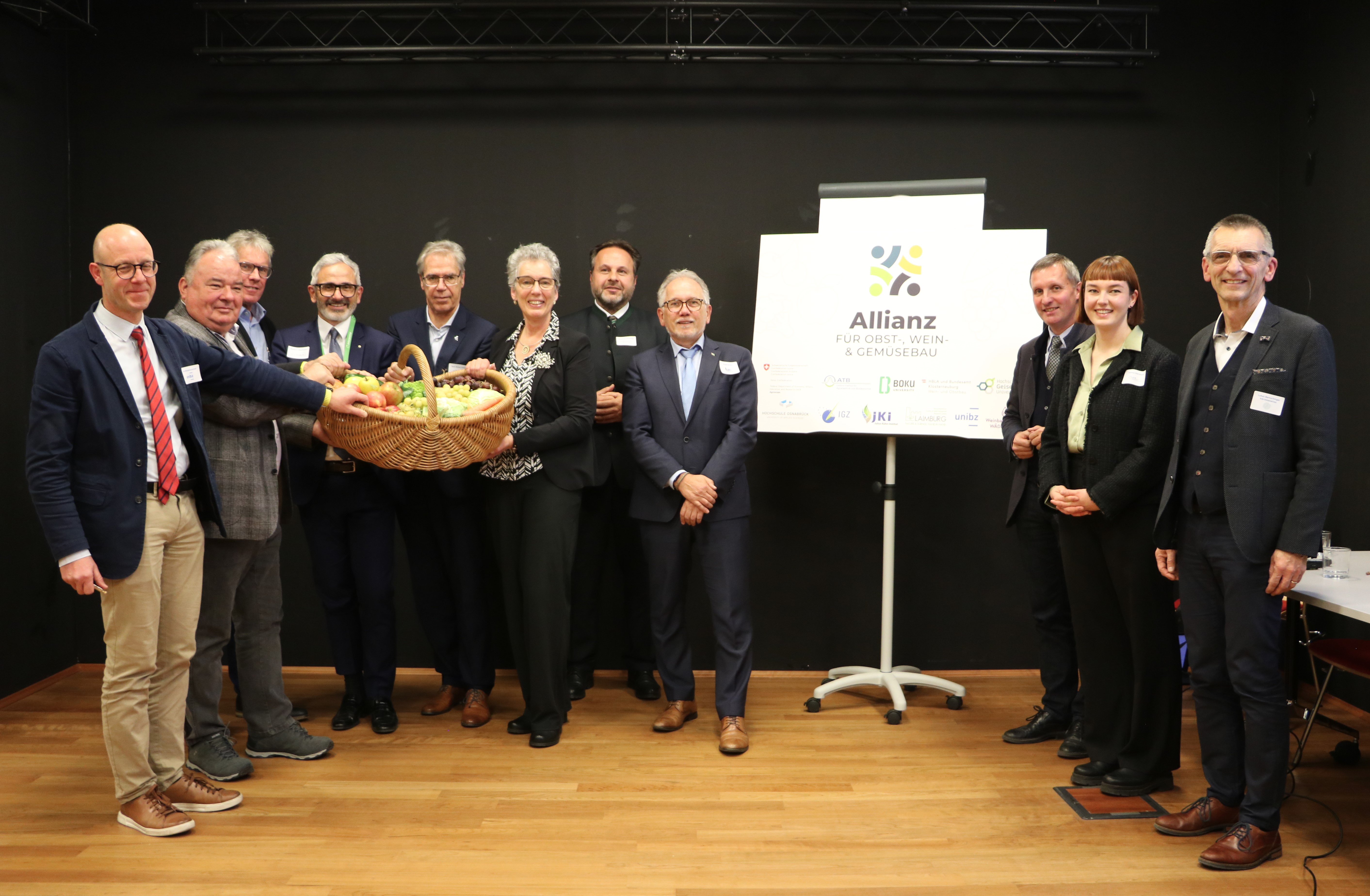 Elf Forschungseinrichtungen und Universitäten aus Deutschland, Österreich, der Schweiz und Italien haben heute, am 21. November 2024, auf der Apfelmesse Interpoma in Bozen eine Absichtserklärung zur Gründung der Allianz für Obst-, Wein- und Gemüsebau unterzeichnet. Ziel dieser Allianz ist es, Forschung, Innovation, Aus- und Weiterbildung in diesen Bereichen entscheidend voranzutreiben. Durch stärkere Zusammenarbeit möchten die Partner der Allianz die ökologischen und wirtschaftlichen Herausforderungen dieses Sektors gemeinsam bewältigen, indem sie nachhaltige, überregionale Lösungen entwickeln. Mit attraktiven Bildungsangeboten und einer größeren Sichtbarkeit wollen sie junge Talente sowohl für die Forschung als auch für die Landwirtschaft begeistern und die Attraktivität der Branche steigern – vom Apfel über Kirschen, Eissalat und Blumenkohl bis hin zu pilzwiderstandsfähigen Rebsorten.