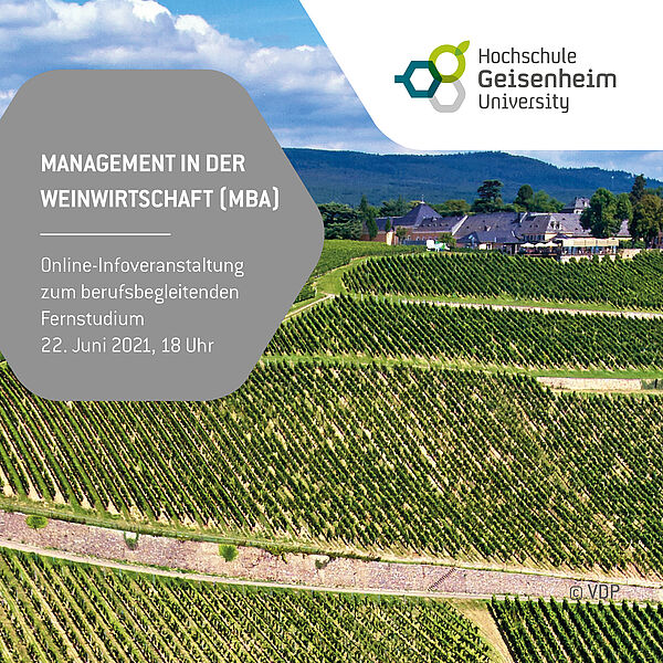 Am Dienstag, den 22. Juni 2021, um 18:00 Uhr lädt die Hochschule Geisenheim alle Interessierten zu einer virtuellen Informationsveranstaltung ein: Vorgestellt wird der deutschlandweit erste berufsbegleitende akademische Master-Studiengang für Fach- und Führungskräfte der Weinwirtschaft in deutscher Sprache. Wer bequem von zu Hause oder aus dem Büro via Greenlight teilnehmen möchte, loggt sich über den Link zur Veranstaltung ein: https://bbb-srv.hs-gm.de/b/lin-9hc-fda-k3x.