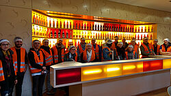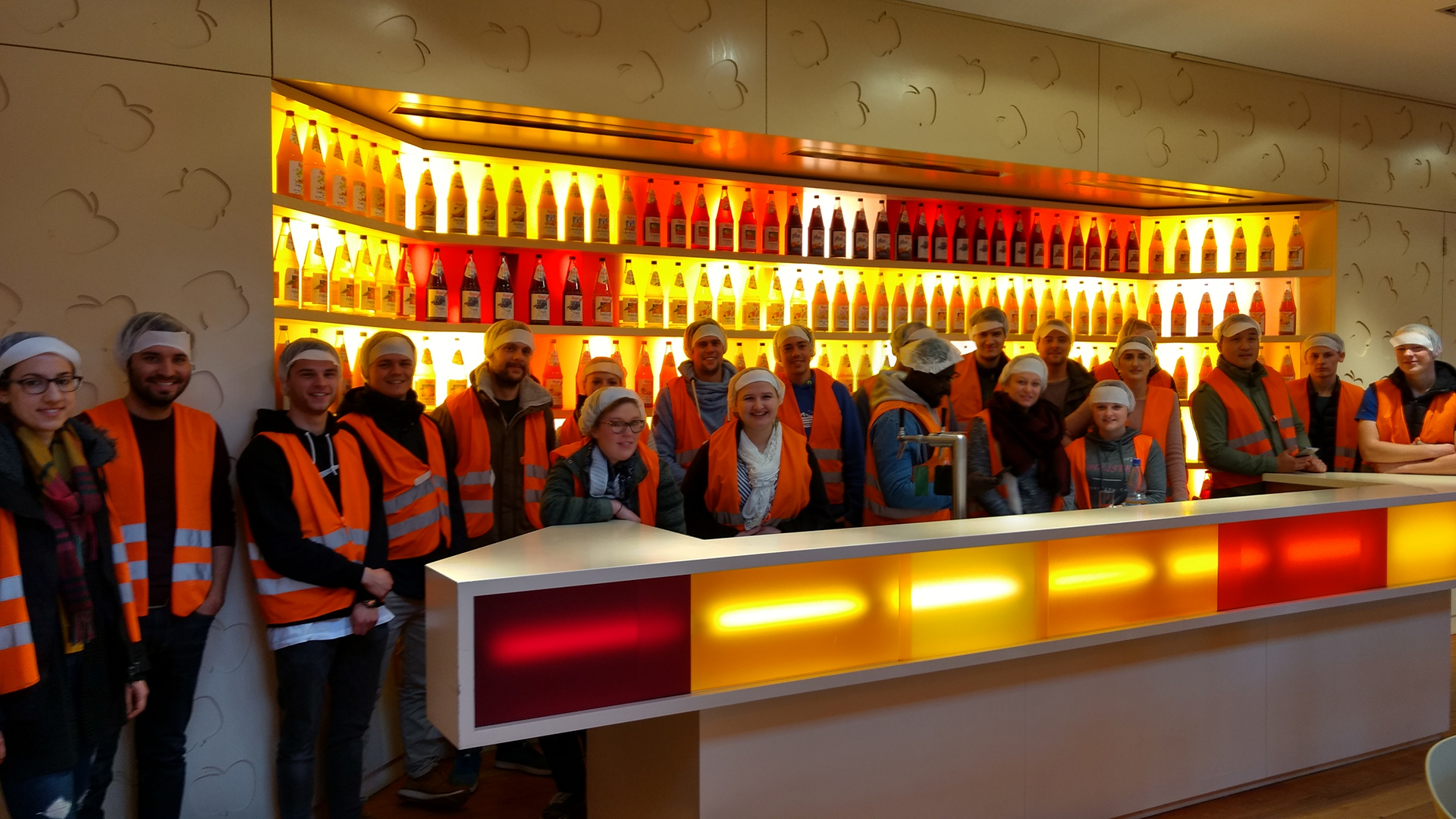 Im dritten Semester lag der Fokus zudem auf der Handelslogistik sowie dem Supply Chain Management im Getränkebereich. Die Studierenden durften sich hier über Ausflüge zu Transgourmet in Riedstadt, Deutschlands Marktführer für die Großverbraucher-Belieferung im Lebensmittelbereich, dem Fruchtsaftproduzenten Rapp’s in Karben, sowie Deutschlands Mineralwassermarke Nr. 1, Gerolsteiner, freuen, die auch logistisch auf einem top modernen Stand ist. Eine logistische Führung durch den Globus Markt in Wiesbaden ermöglichte den Studierenden einen Blick hinter die Kulissen eines Supermarkts der viel Wert auf Frischprodukte legt.
