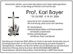 Karl Bayer verstarb am 19. Januar 2024 in Karlsruhe. Gemeinsam werden wir Professor Dipl.-Kfm. Karl Bayer ein würdiges Andenken bewahren!