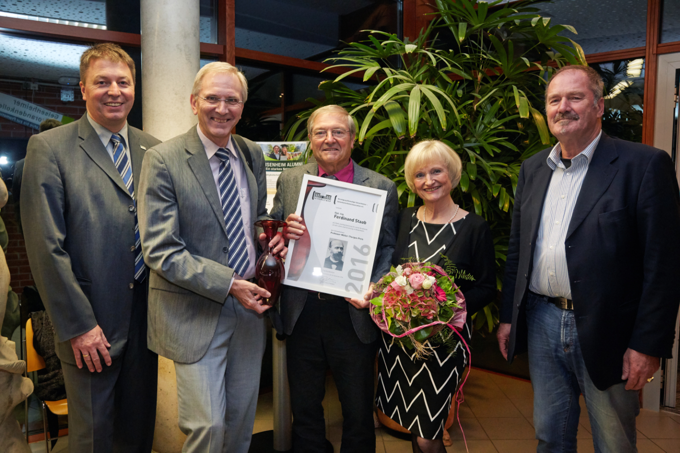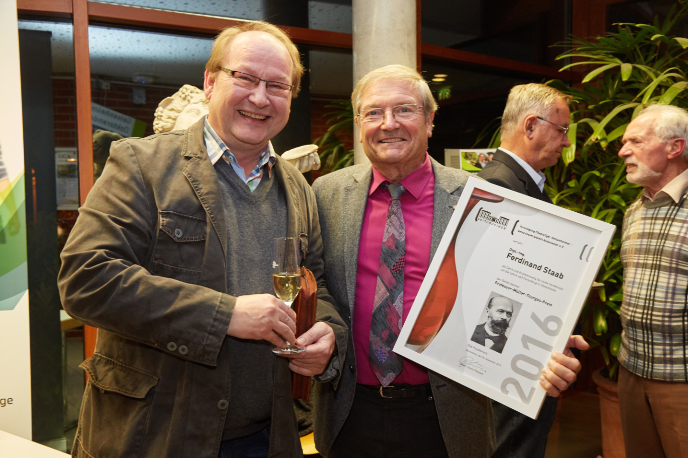 Ein Highlight der Alumni-Mitgliederversammlung 2016 war die Verleihung des Professor Müller-Thurgau-Preises an den Rebenveredler und Rebenzüchter Ferdinand Staab, der selbst von 1966 bis 1969 in Geisenheim studiert hat und den Preis allen Rebenveredlern widmete. Passend zum Thema Rebenzüchtung hielt Prof. Dr. Ernst Rühl vom Institut für Rebenzüchtung die Laudatio. Rühl erklärte unter anderem, warum die Rebenveredelu