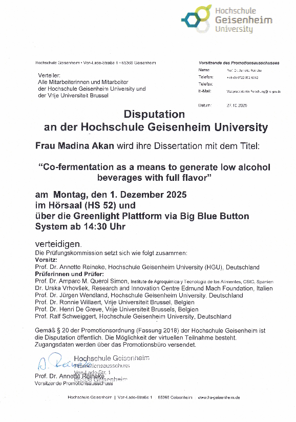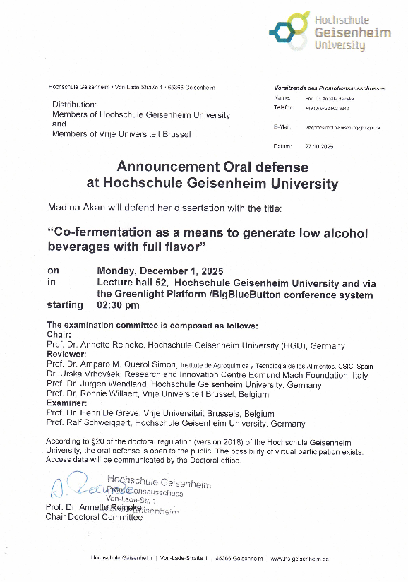 in lecture hall 52, Hochschule Geisenheim University and via the Greenlight Platform /BigBlueButton conference system