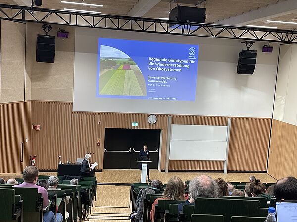 Vier renommierte Expertinnen und Experten hielten Fachvorträge über die Bedeutung von Wildpflanzen für unsere Ökosysteme. Am Nachmittag vertieften die Teilnehmenden das Thema in drei Arbeitsgruppen. Sie entwickelten sowohl Vorschläge zur Verbesserung des „Artenfilters“ als auch optimierte Strategien für den Einsatz von regionalem Saatgut zur Stärkung artenreicher Lebensräume.