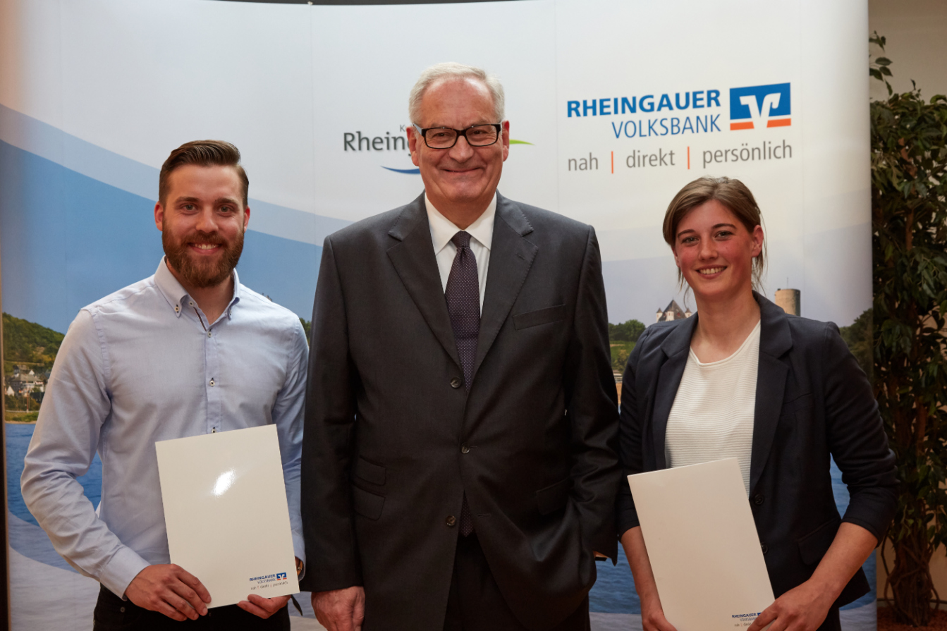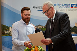 Die Rheingauer Volksbank hat am vergangenen Freitag, 28. April 2017, zwei Absolventen des Studiengangs Weinbau & Oenologie an der Hochschule Geisenheim für ihre herausragenden Abschlussarbeiten mit dem Rheingauer-Volksbank-Preis und je 1.000 Euro Preisgeld ausgezeichnet.