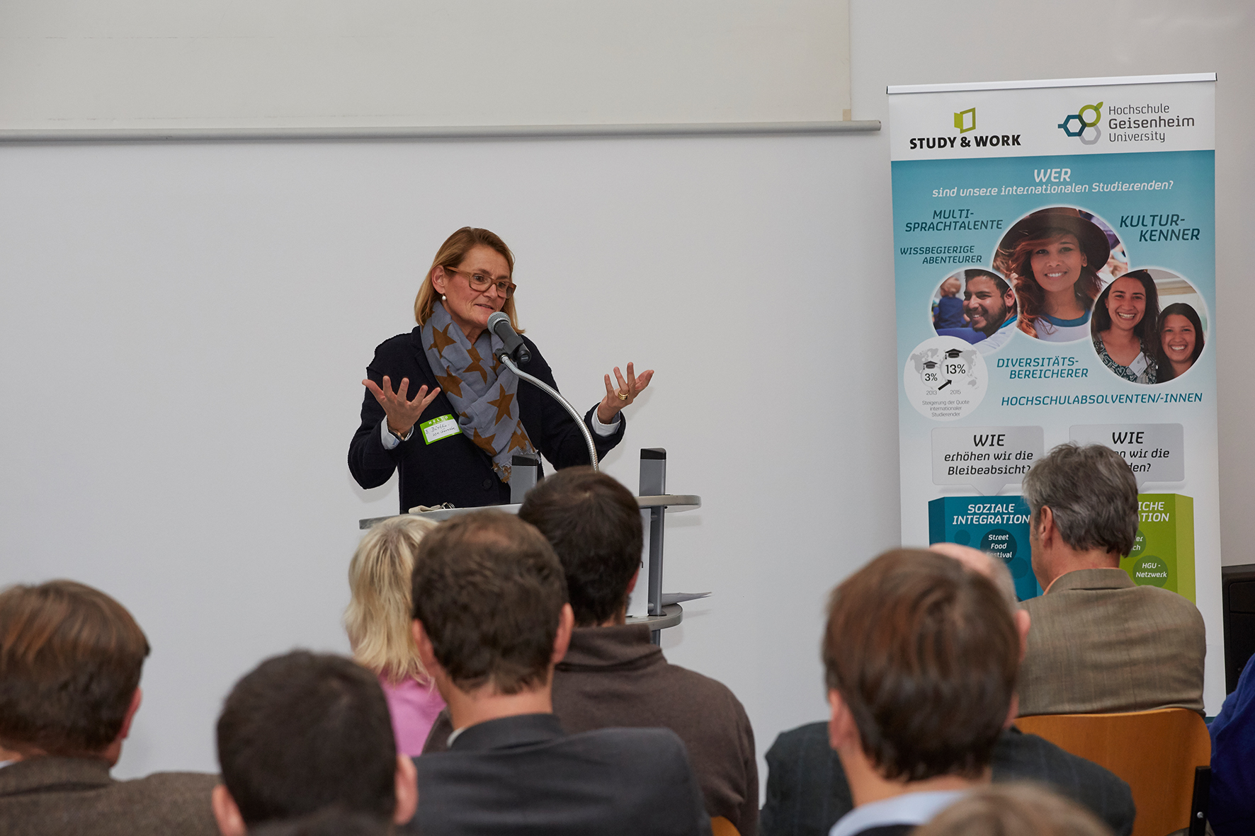 Wie können Unternehmen von hochqualifizierten jungen Menschen mit ausländischem Pass profitieren und wie können sie diese dringend benötigten Fachkräfte in Deutschland halten? Das war Thema des runden Tischs „Shape Your Future in German Business“ am 10. November 2017 an der Hochschule Geisenheim. Gäste der Veranstaltung, die im Rahmen der Initiative Study & Work stattfand, waren internationale Studierende der Hochschule, Vereine, Verbände, Unternehmen, Vertreterinnen und Vertreter von Ämtern und der Politik. Das Ziel: gegenseitiges Verständnis fördern und Netzwerke stärken.