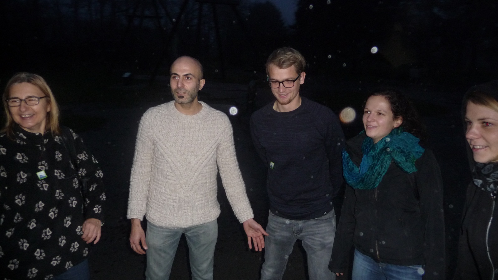 Im Keller des Schlosses befindet sich eine Dunkelbar. In absoluter Dunkelheit saßen wir an einem Tresen und versuchten uns Getränke einzuschenken. Es ist gar nicht schwer, wie man sich das vorstellt. Es gab drei Gänge mit unterschiedlichem Essen. Jeder Gang wurde ausführlich analysiert und es war erstaunlich, wie präzise und unerwartet stark die Geschmacksnerven in Abwesenheit anderer dominanter Sinneseindrücke arbeiten und selbst in Kleinstmengen zugegebene Gewürze herausfinden konnten.
