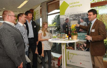 Persönliche Kontakte haben auch einen 25-Jährigen nach Geisenheim geführt; aus Rücksicht auf das Verhältnis zu seinem Arbeitgeber möchte er seinen Namen nicht nennen. „Wenn ich studiere, dann hier“, versichert der Südhesse. In der Getränketechnologie kennt er den Diplom-Ingenieur Arne Sperl, mit dem er früher beruflich zusammen gearbeitet hat. Für Wechsel zwischen Wirtschaft und Forschung gibt es also gute Beispiele vor Ort. Wie viele andere an diesem Tag lobt er die Rahmenbedingungen: „Es wirkt alles wesentlich persönlicher als an einer großen Universität.“