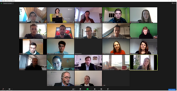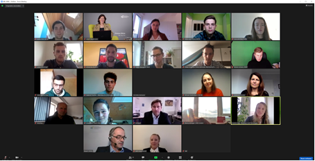 Im Anschluss an die Festvorträge war es auch online nötig, neue Räume zu betreten. Die Vorstellung und Bekanntmachung der Tandems aus Fördernden und Geförderten erfolgte in drei verschiedenen Break-Out-Rooms, die studiengangbereichsweise zugeordnet wurden. Die Studiengangsleitungen übernahmen in den Räumen die Moderation und stellten in sehr persönlicher Runde Studierende und Unternehmensvertreter einander vor. Die jeweils rund 25 Personen, die sich in den einzelnen „Räumen“ befanden, hatten im erstmals angebotenen Online-Format mehr Zeit für den verbindenden Austausch als bei der klassischen Übergabefeier.
