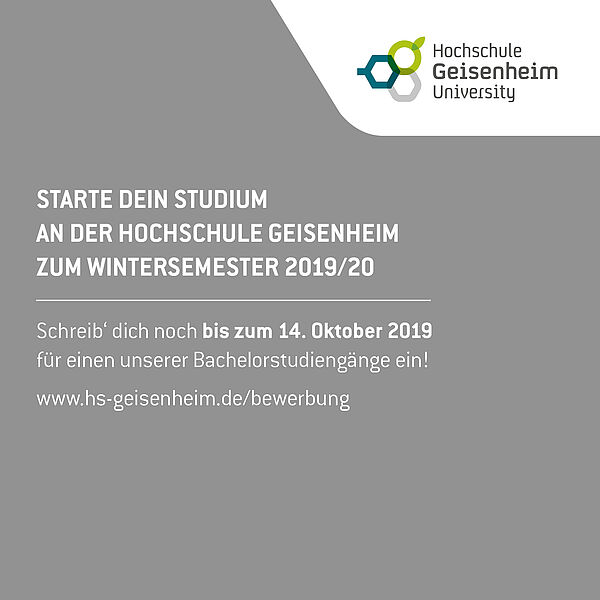 Wer sich für ein naturwissenschaftlich oder technisch orientiertes Studium interessiert und schon zum Wintersemester 2019/20 einsteigen möchte, der ist an der Hochschule Geisenheim richtig. Studieninteressierte können sich noch bis zum Vorlesungsbeginn am 14. Oktober 2019 für alle Bachelor- sowie ausgewählte Masterstudiengänge einschreiben.