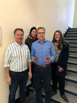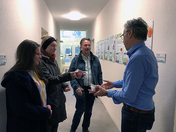 Von den Fähigkeiten der Studierenden durfte sich dann auch Prof. Dr. Hans Reiner Schultz, Präsident der Hochschule Geisenheim, überzeugen. Gemeinsam mit Rolf Häußler übergaben die Studierenden ihm gleich zwei Dutzend der leckeren selbst hergestellten Minisalamis.