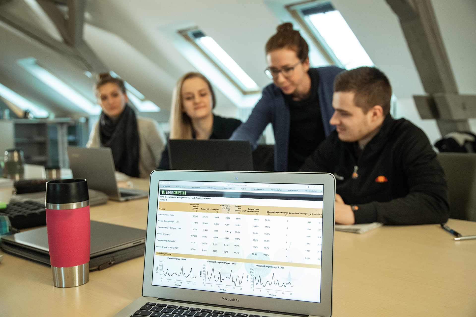 Ein Team von Studierenden der Hochschule Geisenheim nahm in diesem Sommersemester sehr erfolgreich an der Global Student Challenge, dem weltweit größten studentischen Supply Chain Management Wettbewerb, teil. Marcel Kühn, Jana Hildenbrand, Nicola Beuscher und Lukas Elberfeld, Studierende im Studiengang Lebensmittellogistik und -management, schafften es in die Endrunde der besten 38 Gruppen, wo sie sich im guten Mittelfeld platzieren konnten. Weltweit hatten mehr als 25.000 Studierende aus über 100 Ländern in 4er-Teams an der diesjährigen Ausgabe des Wettbewerbs teilgenommen. Die Challenge wird vom niederländischen Supply Chain Simulationsanbieter Inchainge ausgerichtet, das Finale findet jedes Jahr an der Windesheim University of Applied Sciences statt. Unterstützt wurden die Geisenheimer Studierenden von Studiengangsleiter Prof. Dr. Andreas Holzapfel, Professor für Logistikmanagement.