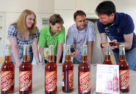 Von der Campunade – „Campu“ wie Campus und „nade“ wie Limonade – gibt es inzwischen zwei Sorten: „red“ mit dem natürlichen Fruchtaroma von Himbeere, Johannisbeere, Heidelbeere und Blaubeere und „gold“ mit dem vollen Pfirsichgeschmack. Beide ohne Zuckerzusatz und gesund. Nicht repräsentativen Umfragen zufolge schmecke Männer die Campunade „gold“ übrigens besser als die rote, und böse Zungen behaupten, das liege daran, dass Flasche und Farbe des Getränkes an Becks Bier erinnerten.