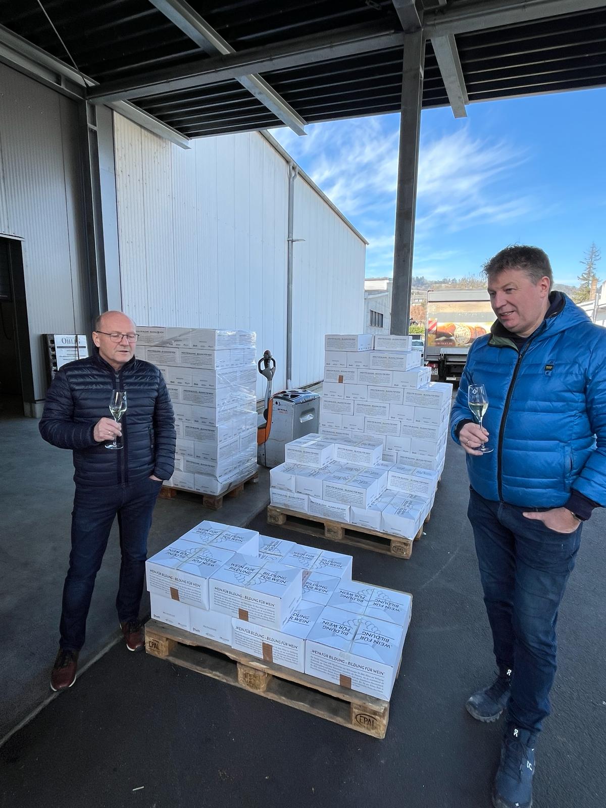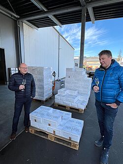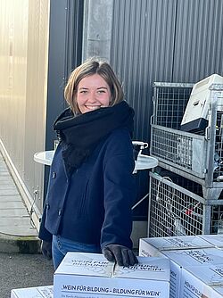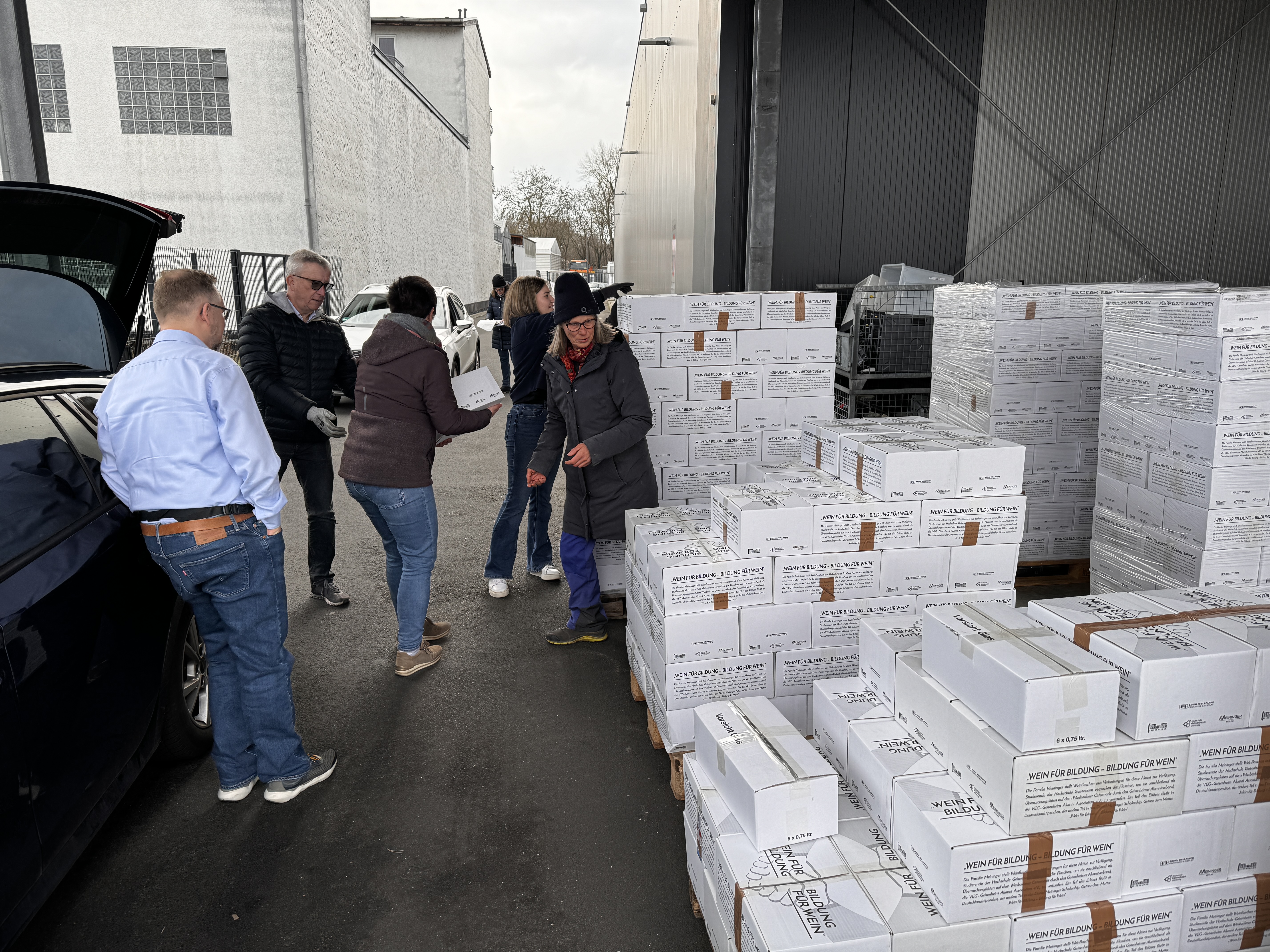 "Am letzten Samstag konnte man in viele glückliche Gesichter schauen!", erklärte Heike Fuhrmann, die die gut organisierte Abholaktion koordinierte. Hatten die Teilnehmer Glück und Geschick, wurden sie Besitzerinnen und Besitzer einiger Überraschungsweinkisten aus der Aktion "Wein für Bildung - Bildung für Wein". Diese wurden am 24.02.2024 in nur 5 Minuten und 12 Sekunden über den Online-Shop der Hochschule Geisenheim, betrieben von der GMAssist UG - Innovation is future, verkauft. Die Ausgabe erfolgte mit Unterstützung der Helferinnen und Helfer der VEG - Geisenheim Alumni Association e.V. und der Sektkellerei Ohlig direkt an deren Verkaufslager. Der technische Betriebsleiter und Geisenheimer Alumnus Karlheinz Bubeck unterstützte die Aktion persönlich. Besonders sei erwähnt, dass das Verlagshaus Meininger in Neustadt diese Aktion seit vielen Jahren ermöglicht. Mit dieser Aktion wird vor allem das Daniel-Meniniger-Scholarship und das Deutschlandstipendium unterstützt. Herzlichen Dank an alle Käuferinnen und Käufer!