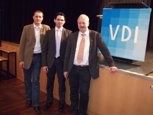 Mostfiltration mit Kammerfilterpressen“ war das Thema einer Diplomarbeit die Fabian Schäfer in Zusammenarbeit mit der Fa. Erbslöh untersuchen konnte. Die technische Versuchsdurchführung, die wissenschaftliche Ausarbeitung und die Interpretation der Ergebnisse waren so überzeugend, dass der VDI Bezirksverein Rheingau diese Arbeit als besonders auszeichnungswürdig einstufte. Zusammen mit drei weiteren Arbeiten aus anderen Fachbereichen fand die Preisverleihung im Rahmen der Mitgliederversammlung am 22.03. in der Stadthalle in Flörsheim vor mehr als 150 interessierten Zuhörern statt. Zu den geladenen Gästen gehörte auch der betreuende Hauptreferent Prof. Mark Strobl, der ebenfalls die Anerkennung des VDI für seine geleistete Arbeit in der Ingenieursausbildung erfahren durfte.