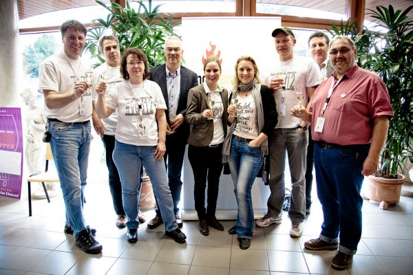Das ORGA-Team VinoCamp Deutschland 2012 mit dem Direktor der Forschungsanstalt Geisenheim Prof. Dr. Schultz, der Deutschen Weinkönigin Annika Strebel und Joachim-Eberhard Maltzahn vom Hessischen Ministerium für Umwelt, Energie, Landwirtschaft.