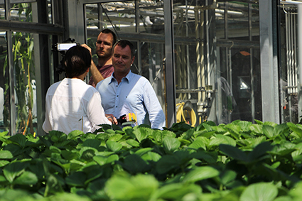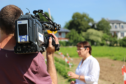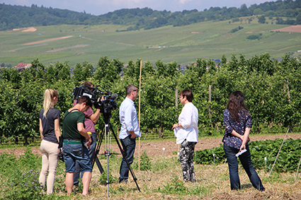Gleich zwei Fernseh-Teams hat Frau Dr. Erika Krüger vom Institut für Obstbau der Hochschule Geisenheimheute Rede und Antwort gestanden. Im Fokus: Das EU-Projekt „GoodBerry“. Das von der Universität Málaga koordiniert Projekt beschäftigt sich mit Erdbeeren, Himbeeren und Schwarzen Johannisbeeren als Modellpflanzen und soll neue Erkenntnisse hinsichtlich der Anpassung von Sorten an unterschiedliche klimatische Bedingungen sowie dessen Einfluss auf die Fruchtqualität der Beeren liefern. Durch den Anbau gleicher Sorten bzw. Sämlinge an verschiedenen Standorten vom Norden zum Süden Europas soll der Einfluss unterschiedlicher Klimazonen auf die Pflanzen untersucht werden, um so den Klimawandel zu simulieren.