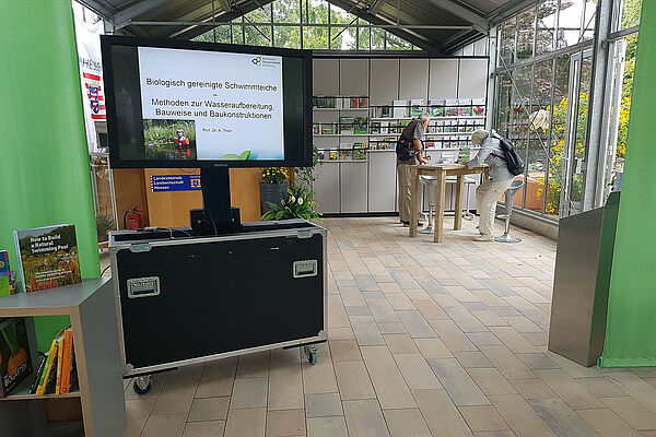 Prof. Dr. Andreas Thon, Professor für Bautechnik in der Landschaftsarchitektur an der Hochschule Geisenheim, hat seine Expertise rund um biologisch gereinigte Schwimmteiche auf der Landesgartenschau Bad Schwalbach im Gärtnertreff an Interessierte weitergegeben. Bei bisher zwei Terminen informierte er über die unterschiedlichen Methoden der Wasseraufbereitung und stellte Schritt für Schritt die möglichen Bauweisen und Konstruktionen anhand verschiedener Schwimmteich-Modelle vor. Im Anschluss stand er für individuelle Beratungsgespräche zur Verfügung.