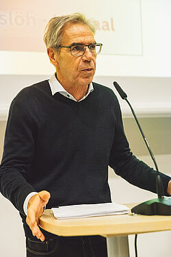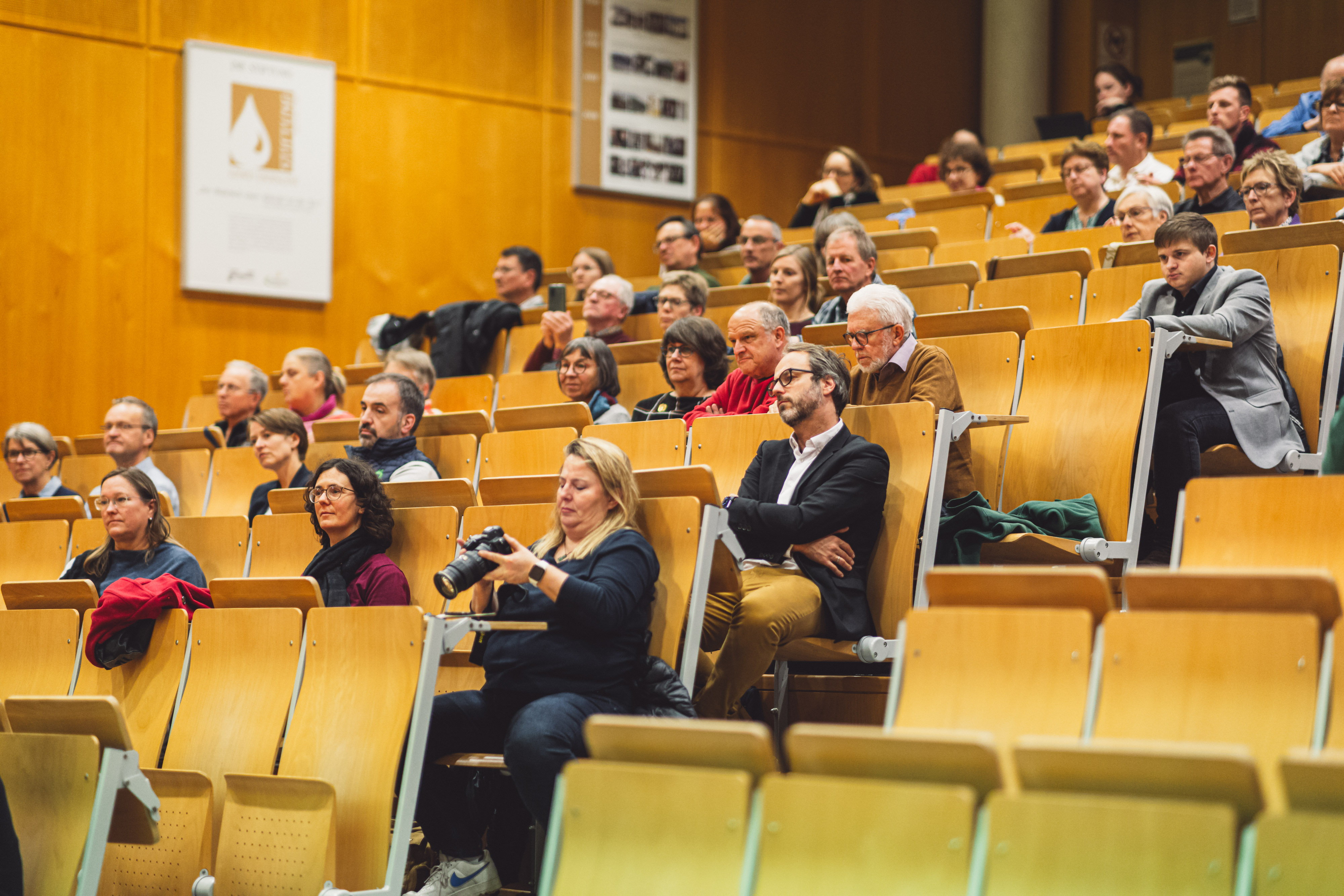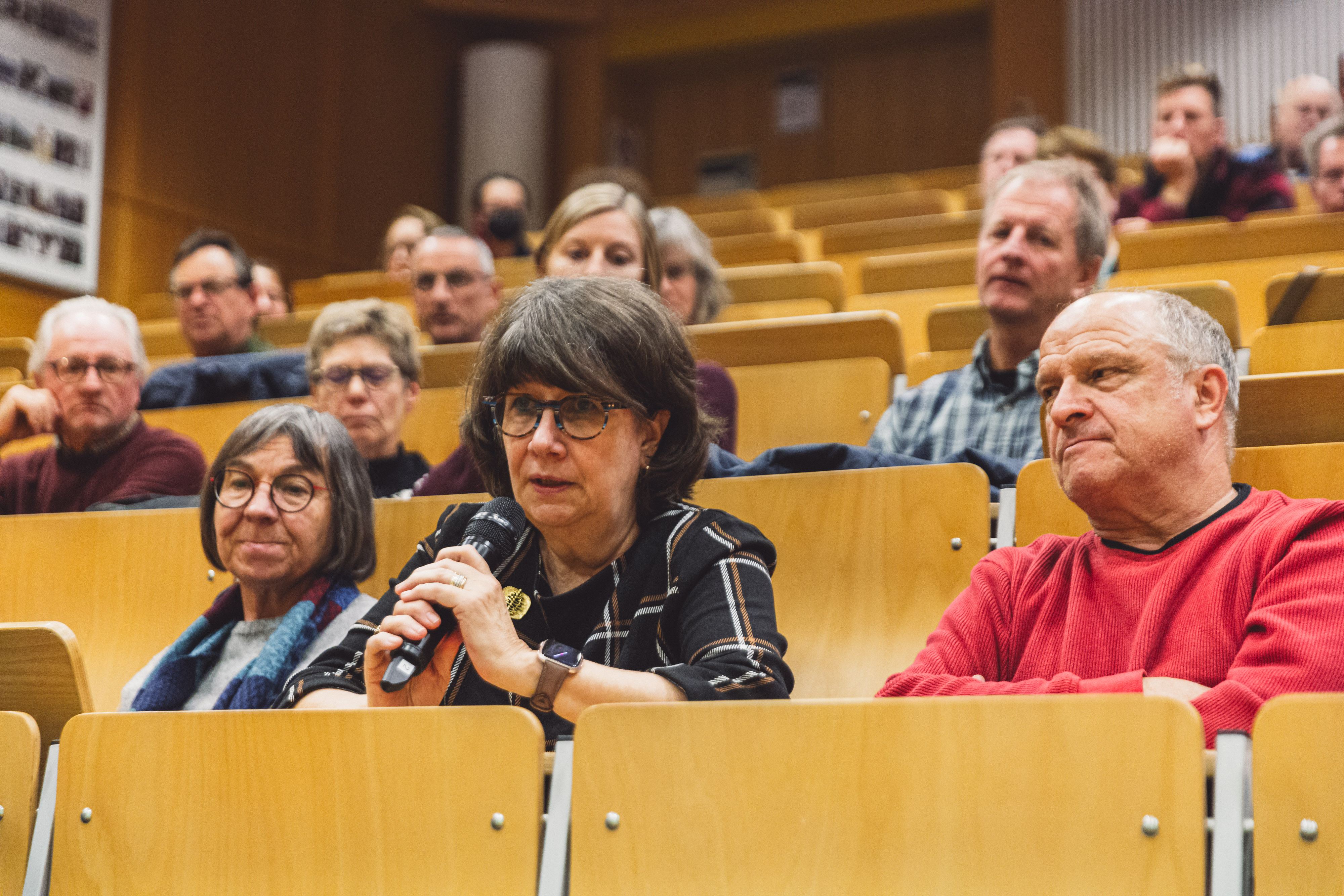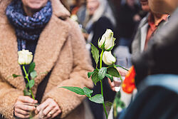 Zum Vortrag waren rund 80 Gäste in den Gerd-Erbslöh-Hörsaal auf dem Campus der Hochschule gekommen, rund 20 weitere hatten sich online zugeschaltet. Im Anschluss an die Veranstaltung hatten Bündnis und Hochschule noch zum Ausklang im Foyer des Gebäudes eingeladen. Als Erinnerung an die Veranstaltung verschenkten Vertreter;innen des Bündnis weiße Rosen.