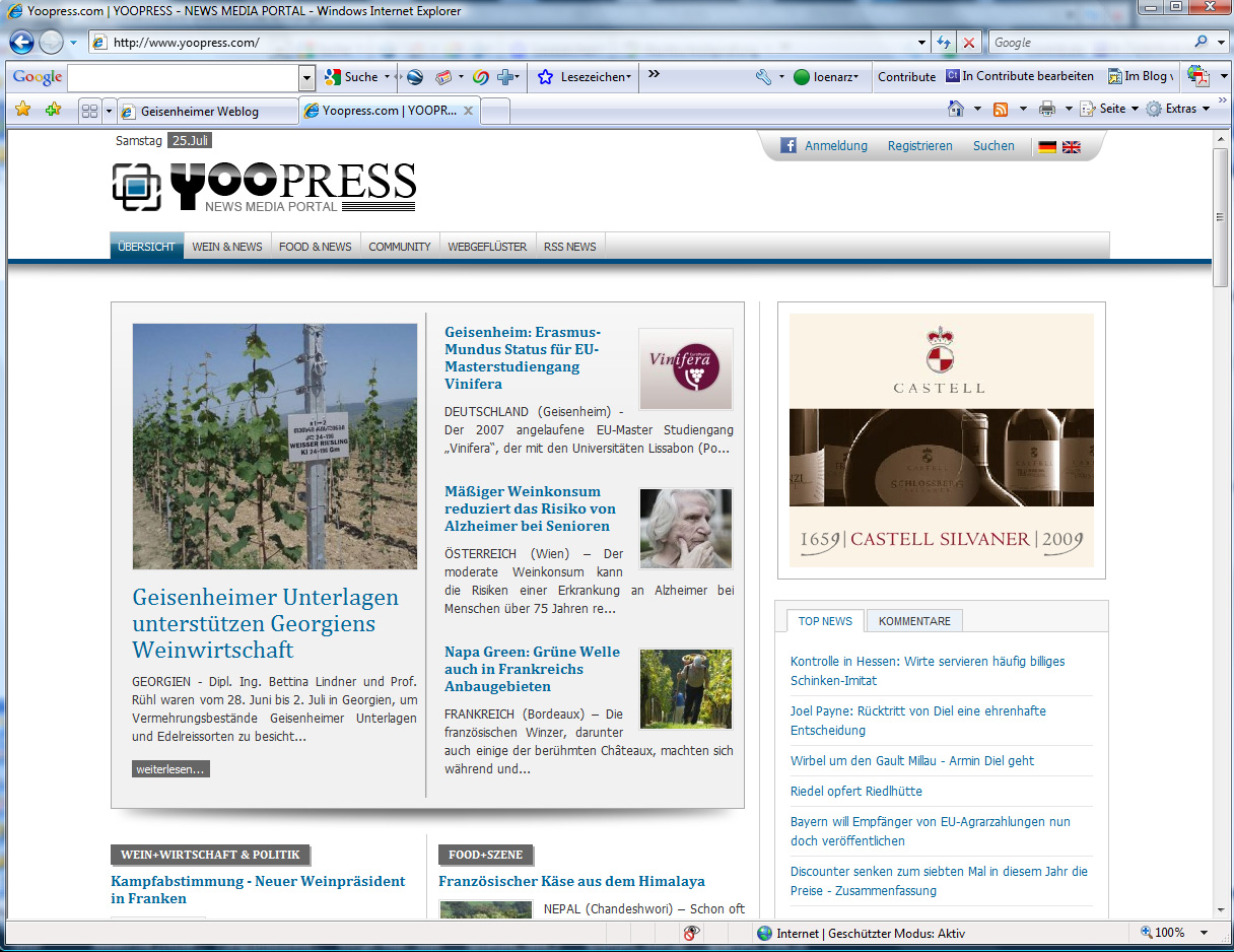 In meiner Vorlesung „Angewandte Informatik“ habe ich mit den Geisenheimer Studierenden des 1. Semesters viel über das Thema Web 2.0 diskutiert – YOOPRESS ist ein Vorzeigebeispiel, wie man dieses Thema hervorragend für die Weinszene umsetzen kann.