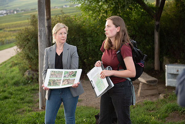 Mira Foerster und Dr. Nora Mehnen vom Institut für Landschaftsplanung und Naturschutz der Hochschule Geisenheim University hatten zum ersten ScienceWalk eingeladen. (C) Dirk Klinner