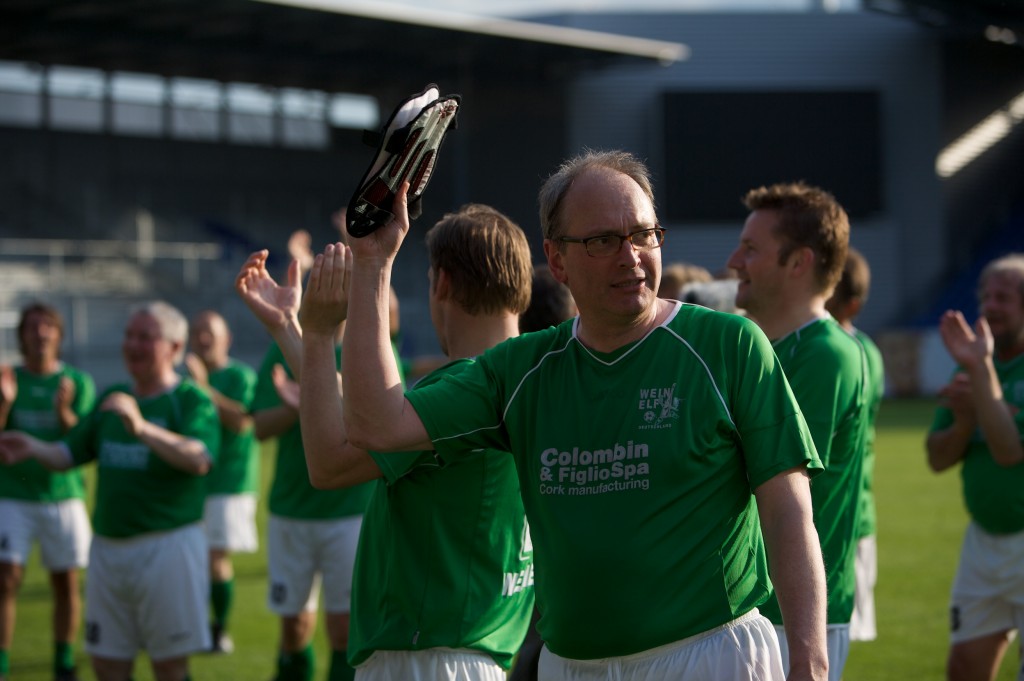 In der BRITA-Arena, einem wunderschönem 2. Liga-Stadion in Wiesbaden, konnte die WEINELF Deutschland im Sommer 2008 die Winzernationalmannschaft Österreichs mit 4:0 besiegen. Im Bild oben zu erkennen ist Armin Diel (Schlossgut Diel) und die beiden „Spreitzer“-brüder Andreas und Bernd (Weingut Josef Spreitzer, Oestrich-Winkel), sowie Rudi Knoll.