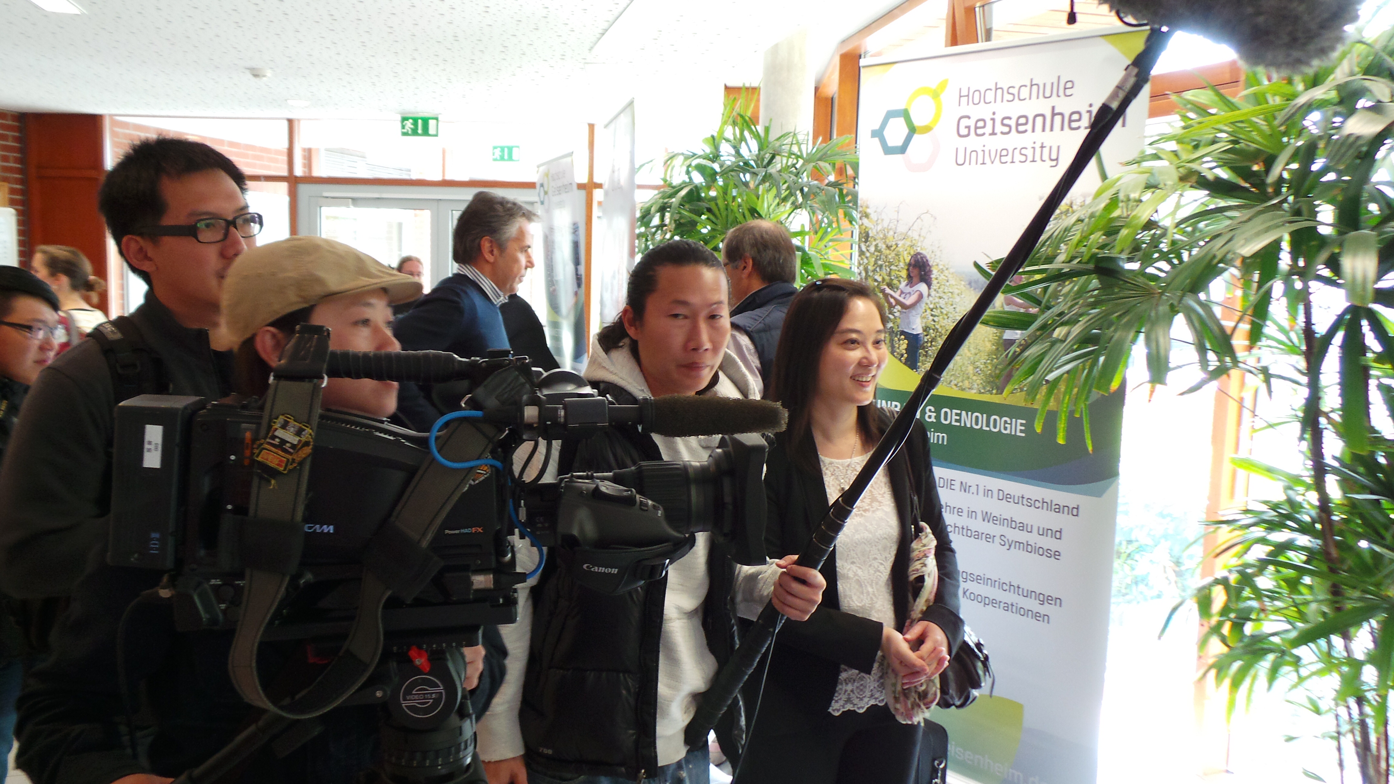Auf großes Interesse stieß auch der neue englisch-sprachige Bachelorstudiengang „International Winebusiness“, der ab Oktober 2014 startet und zu dem Prof. Dr. Jon Hanf als Studiengangleiter gern Rede und Antwort stand. Auf besonderes Interesse stieß der Studieninfotag auch beim Filmteam des Fernsehsenders Sanlih aus Taiwan, das die Gelegenheit nutzte, ein Stimmungsbild der Hochschule einzufangen und mit Studierenden und Lehrenden ins Gespräch zu kommen.