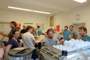 Ein Besuch bei Arne Sperl, – der ebenfalls eine KHS Vergangenheit hat – , in der Kaffeerösterei der Hochschule sorgte für ein kleines Kaffeepraktikum. Nebenher wurden zwischen den „Röhstungen“ (mit „öööh“, so spricht man das) im alten Getränketechnologischen Zentrum (GTZ) die Anlagen zur Fruchtsaft-, Bier-, Schnaps- und Aromaherstellung besichtigt.