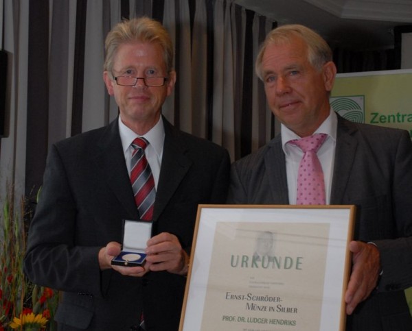 ZVG) „Neue Ansätze im Zierpflanzenanbau, nationale und internationale Forschungs-Kooperationen, die wissenschaftliche Lehre, der direkte Draht zur Praxis der Gärtner und eine umfassende Beratertätigkeit zeichnen eine Persönlichkeit aus, die wir als Querdenker im besten Sinne des Wortes bezeichnen können und der wir im Gartenbau viel zu verdanken haben“. Für sein außerordentliches Engagement zeichnet der Zentralverband Gartenbau heute Professor Dr. Ludger Hendriks mit der Ernst-Schröder-Münze in Silber aus. Heinz Herker, Präsident des Zentralverbandes Gartenbau (ZVG), ehrte Professor Dr. Ludger Hend-riks auf dem Deutschen Gartenbautag auf der BUGA 2011 in Koblenz, am heutigen Freitag, 2. September.