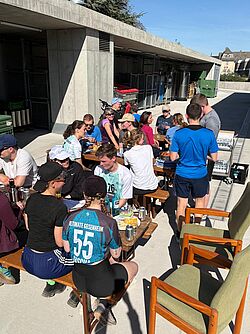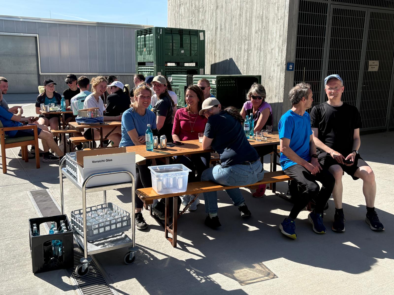 Bei schönem Wetter, bester Laune und geselligem Abschluss stärkten sich die Walker- und Walkerinnen, Läufer und Läuferinnen anschließenden nach den sportlichen Anstrengungen im Hof des neuen Getränketechnologischen Zentrum (GTZ) der Hochschule.