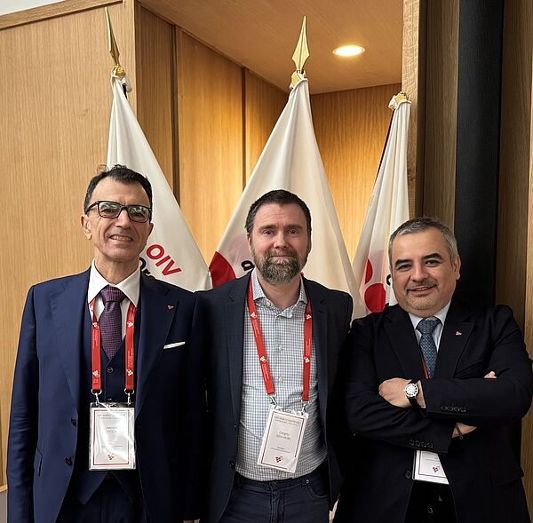 Foto: v.l.n.r Antonio Seccia (Stellvertretender Vorsitzender), Gergely Szolnoki (Vorsitzende) und Alejandro Fuentes Espinoza (Leiter der Kommission für Wirtschaft und Recht)