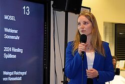 In der Folge eröffnete sich den Gästen ein vinophiler Rundgang durch die renommiertesten Lagen Deutschlands. Vom Heppenheimer Steinkopf über das Westhofener Kirchspiel und den Erbacher Marcobrunn bis zum legendären Forster Kirchenstück, vom fränkischen Homburger Kallmuth über die sächsische Spitzenlage Schloss Proschwitz bis hin zum Freyburger Edelacker in Saale-Unstrut, vom Nahe-Klassiker Wallhäuser Johannisberg über die weltberühmte Wehlener Sonnenuhr an der Mosel, vom Mittelrhein-Juwel Bacharacher Hahn bis zum Lemberger aus dem Neipperger Schlossberg in Württemberg und schließlich zu den großen Spätburgundern aus dem Wallporzheimer Kräuterberg an der Ahr und dem lhringer Winklerberg in Baden stellten Monika Christmann und Otmar Löhnertz Weine vor, deren Auswahl einer Parade deutschlandspezifischer Spitzenlagen glich. Zum Teil waren auch Vertreter der Winzer nach Geisenheim gekommen, um ihre Weine persönlich vorzustellen. Für den Moselwein übernahm diese Aufgabe die Deutsche Weinkönigin Anna Zenz. Etwas wehmütig wurde es, als der Spätburgunder von der Ahr vorgestellt wurde: Ein Wein aus dem Weingut Meyer-Näkel aus dem Jahr 2021 –jenem Jahr, in dem die Flutkatastrophe über das kleine Anbaugebiet hereinbrach. Bei vielen Gästen schwang auch die Erinnerung an Werner Näkel mit. Die Rotwein-Legende verstarb im September im Alter von 72 Jahren.