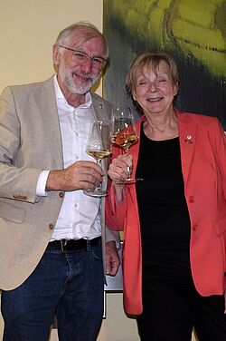 Begonnen hatte der genussreiche Abend mit einer traurigen Nachricht. Norbert Bardong, renommierter Sektmacher aus Geisenheim verknüpfte die Vorstellung seines Begrüßungssekts, eines „2022er Erbacher Honigbergs Riesling brut" mit der Ankündigung, dass er seine Sektmanufaktur Ende des Jahres schließen werde. 41 Jahre lang führte er zusammen mit seiner Frau Renate die Kellerei. Sein Erfolgsrezept war die traditionelle Flaschengärung, verbunden mit der Philosophie „eine Rebsorte, eine Lage, ein Jahrgang". ,,Wir wollten nicht, dass wir unsere Kellerei abgeben und ein neuer Besitzer mit einem anderen Konzept unter unserem Namen weitermacht", begründete Renate Bardong das endgültige Aus.