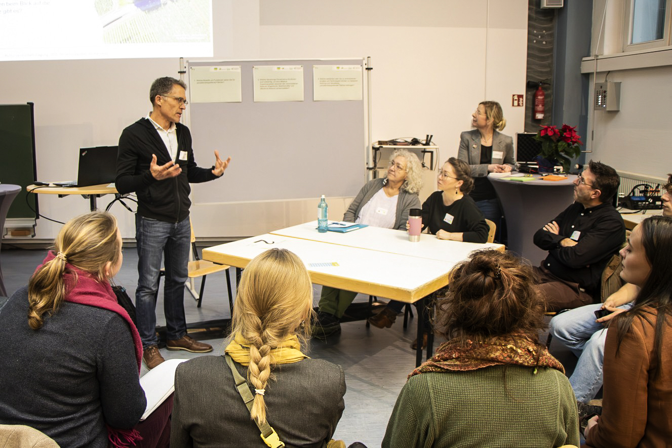 An vier parallelen Thementischen entwickelten die Teilnehmenden am Nachmittag Visionen für alternative Nutzungen von Weinbergsbrachen und übergreifenden Flächen und erörterten fördertechnische und rechtliche Implikationen sowie gesellschaftliche Erwartungen. Die Vorschläge werden in die aktiven Netzwerke im Rheingau einfließen, um so manche Idee Realität werden zu lassen.