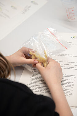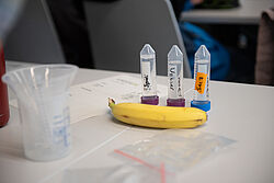 Nach dem Vortrag und kurzer, altersgemäßer Einführung in Sachen Genetik, durften alle Kinder die DNA der Banane extrahieren und für das Auge sichtbar machen.