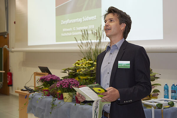 Das diesjährige Programm des Zierpflanzentages Südwest griff diese Aspekte hervorragend auf und Teilnehmende konnten gleichzeitig auch ihrer Fortbildungsverpflichtung nachkommen. Mit ihrem interessanten Vortrag zum Thema „Gefühlte und tatsächliche Risiken von Pflanzenschutzwirkstoffen“ sorgte unter anderem die Referentin PD Dr. Gaby-Fleur Böl vom Bundesinstitut für Risikobewertung für Begeisterung bei den Teilnehmenden. Neues gab es ebenfalls im Gewächshausverbinder bei den zahlreichen Ausstellern zu entdecken, die dort ihre Entwicklungen und Produktpaletten präsentierten. Dort hatten die Besucher die Gelegenheit mit zahlreichen Firmen und Organisationen in Kontakt zu treten. Außerdem konnten die Interessierten Einblicke in aktuelle Forschungsvorhaben des Instituts für Urbanen Gartenbau und Pflanzenverwendung gewinnen.