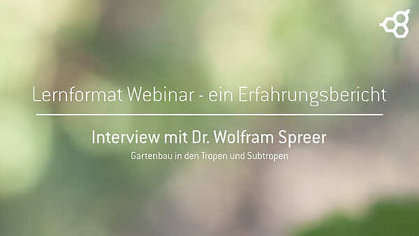 Mit Dr. Wolfram Spreer, Wissenschaftler der Agrartechnik in den Tropen und Subtropen am renommierten World of Vegetable Center in Hyderabad, konnte von der Studiengangleitung Eike Kaim ein kompetenter Referent für die Gartenbau-Studierenden gewonnen werden. Der Online-Kurs soll im nächsten Sommersemester wiederholt werden.