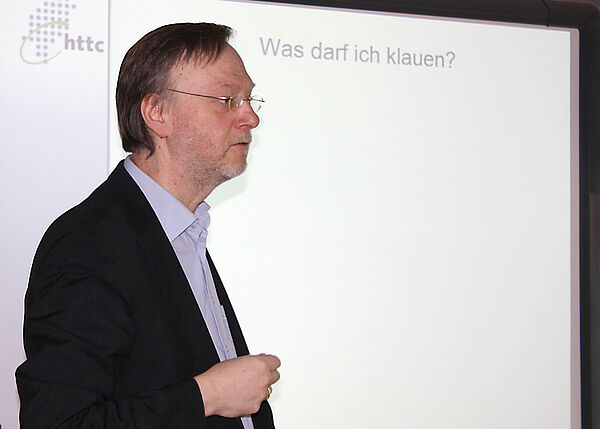 Zu diesem Zweck hatten Vizepräsident Lehre und Frau Richardt von der Abteilung Hochschuldidaktik und eLearning mit dem Medienrechtler Jan Hansen einen Profi eingeladen, der die rechtlichen Grundlagen bei dem Verfügbarmachen von digitalen Lernressourcen kompetent und kurzweilig vorstellte und auf jede Frage eine hilfreiche Antwort hatte.