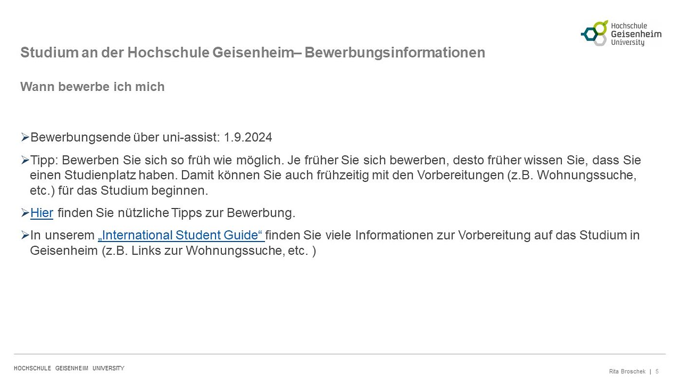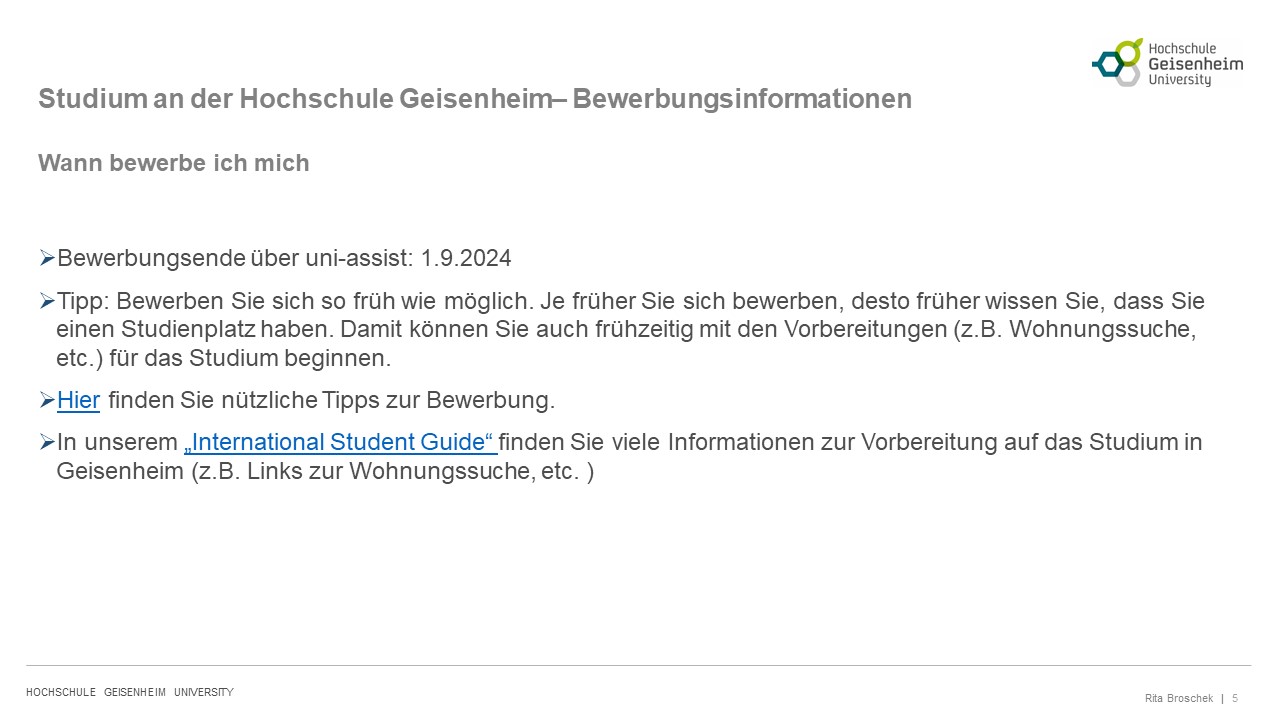 In unserem „International Student Guide“ finden Sie viele Informationen zur Vorbereitung auf das Studium in Geisenheim (z.B. Links zur Wohnungssuche, etc. )