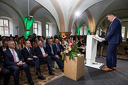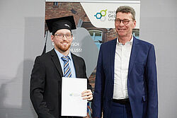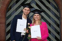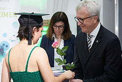 Im Rahmen der akademischen Abschlussfeier verlieh die Hochschule Geisenheim 139 Absolventinnen und Absolventen ihrer Bachelor- und Master-Studiengänge die Abschlusszeugnisse. Prof. Dr. Hans Reiner Schultz, Präsident der Hochschule Geisenheim, sowie die Vizepräsidentin Lehre, Prof. Dr. Mirjam Hey, gratulierten den Abgängern herzlich. „Gestern Studium, heute Abschlussfeier, und morgen öffnet sich eine neue Tür für Sie - eine Welt voller Möglichkeiten, Herausforderungen und Abenteuer. Sie stehen an der Schwelle zu einer vielversprechenden Zukunft. Gehen Sie mit Mut und Zuversicht voran. Seien Sie neugierig, lernbereit und scheuen Sie nicht, sich neuen Herausforderungen zu stellen“, so Hey, die in ihrer Rede auch appellierte, die Ausbildung nicht nur für den persönlichen Erfolg zu nutzen, sondern auch, um einen positiven Einfluss auf die Welt auszuüben. „Seien Sie verantwortungsbewusste Bürgerinnen und Bürger, die sich für soziale Gerechtigkeit, Nachhaltigkeit und Gemeinschaft engagieren. Setzen Sie Ihr Wissen und Ihre Fähigkeiten ein, um die Welt zu einem besseren Ort zu machen.“