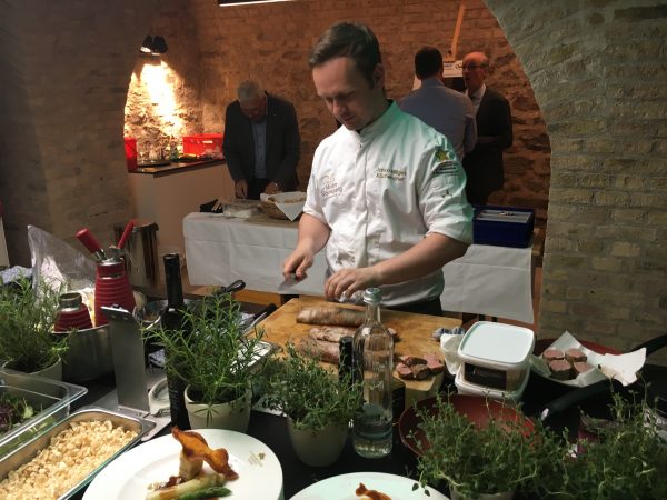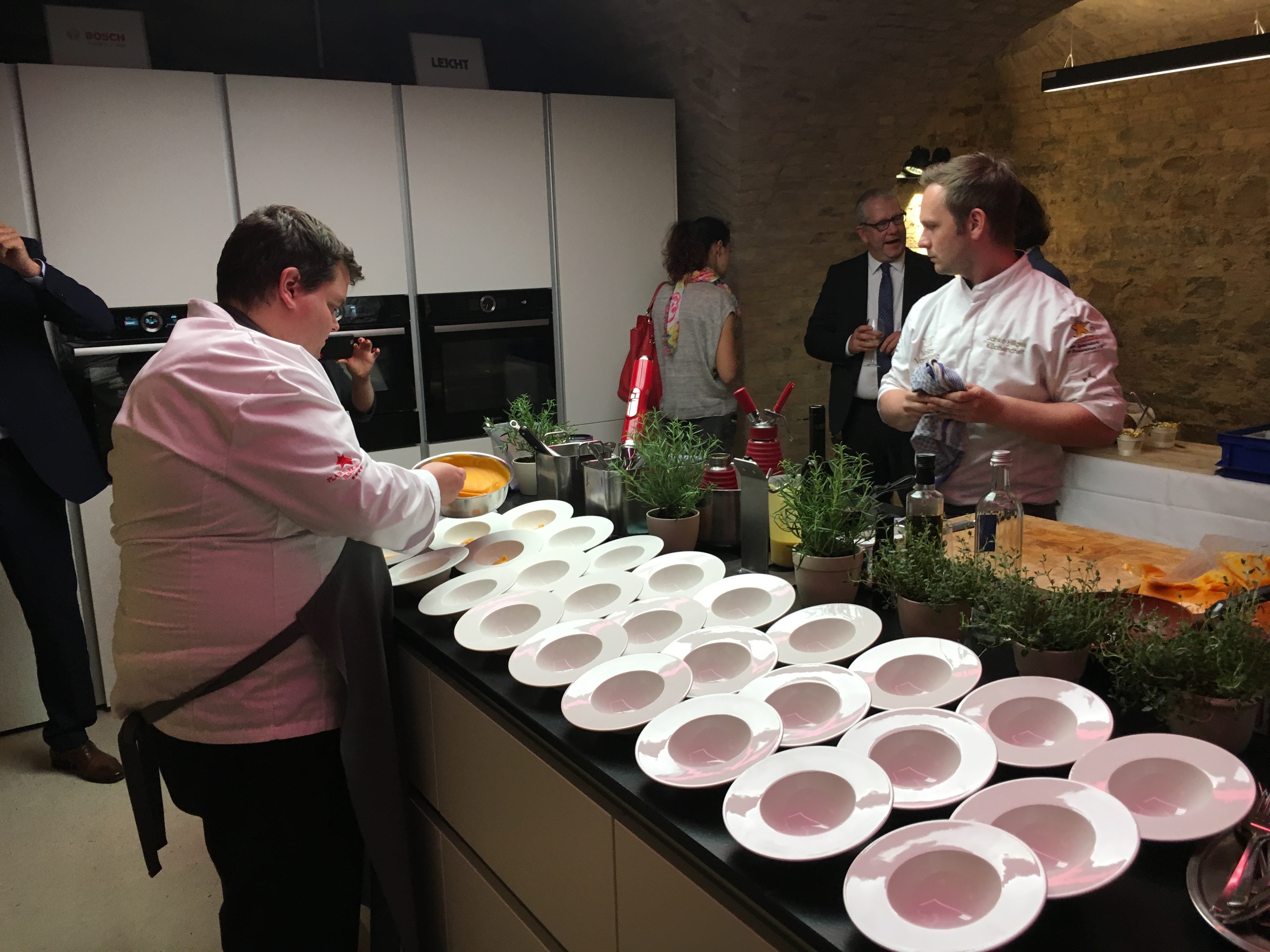 Die Geschäftsführungen der BOSCH Haushaltsgeräte GmbH in München und der Firma LEICHT ließen es sich nicht nehmen, persönlich der Einladung des Hochschulpräsidenten Prof. Dr. Hans Reiner Schultz und des VEG-Alumni Präsidenten Robert Lönarz zu folgen, um im Geisenheimer Uni-Keller einen genussreichen Abend zu erleben. Beide renommierte Unternehmen hatten intensiv den Ausbau des Kellers unterstützt! Die Küche, die im Zentrum des Uni-Kellers im Müller-Thurgau-Hauses den kommunikativen Mittelpunkt bildet, kann sich sehen lassen. „Man sieht eine Mischung aus geradliniger Eleganz und Hightech, die die Wirkung des historischen Kellers von Professor Müller-Thurgau wunderbar ergänzt“, stellt der verantwortliche Architekt Thomas Fladung (Wiesbaden) begeistert fest. Der Küchenmeister des Flair Parkhotels in Ilshofen Janko Hilliges zauberte mit den geladenen illustren Gästen aus Wirtschaft, Politik und Kultur ein erstklassiges 5-Gang-Menü, welches die OIV-Präsidentin Prof. Dr. Monika Christmann mit Weinen des Weingutes der Hochschule Geisenheim begleitete. Bis spät in die Nacht wurde gekocht, Weine verkostet und viele, viele Gespräche geführt! „Genau diese Intention verfolgt unser Uni-Keller“, so VEG-Präsident und Campus Manager Robert Lönarz. Bis jedoch der Uni-Keller in voller Funktion ist, wird noch einige Zeit vergehen, denn als Fundraising-Projekt soll dieser sich vollkommen aus Spenden und Sponoring refinanzieren. Insbesondere für den angegliederten Weinkeller sind noch viele Sachspenden und Gelder notwendig. „Ich werde von meiner Fundraising-Referentin Simone Böhm hervorragend unterstützt und wir kommen Tag für Tag dem Ziel näher! Gerade heute kamen die wunderbaren mundgeblasenen Gläser Serie Simplify der Firma Schott-Zwiesel an. Jeder erfolgreiche Schritt motiviert uns, weiter zu machen!“ Wer den Ausbau des Kellers unterstützen möchte, der wendet sich gerne an die Fundraising-Referentin der Hochschule Simone Böhm, info@geisenheimer.de / simone.boehm@hs-gm.de, Tel + 496722-502741