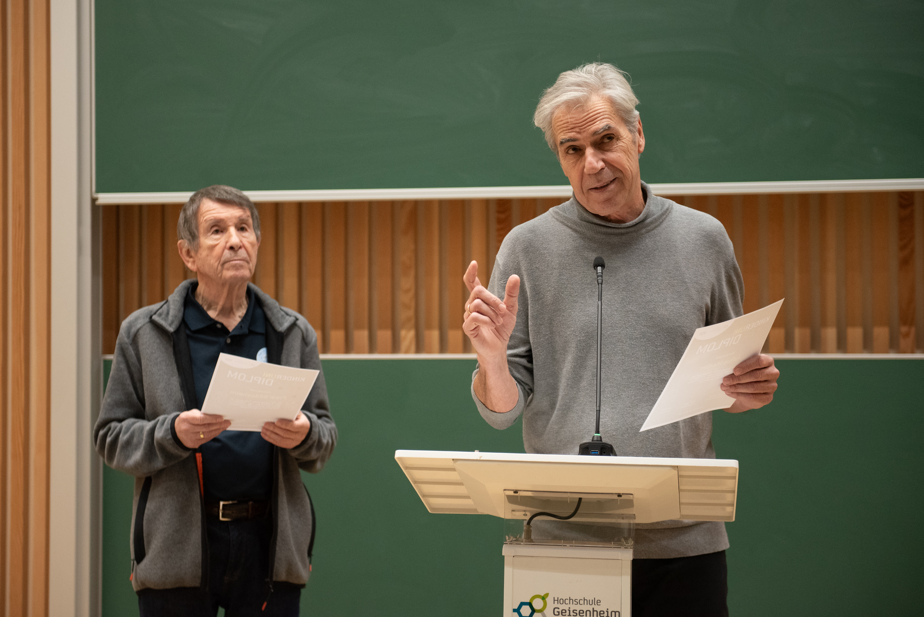 Am 26. November war es dann soweit. Von insgesamt rund 70 Kindern aus dem Rheingau und der Region, die in diesem Jahr dabei waren, wurden 44 mit Familie in den neuen Hörsaal der Hochschule Geisenheim eingeladen, und bekamen ihr KINDERUNI-Diplom von Prof. Dr. Schultz (Präsident der Hochschule Geisenheim) und Wolfgang Truss (Geschäftsführer des VDI Rheingau-Bezirksvereins e.V.) persönlich überreicht. Sieben Kinder erhielten sogar das Diplom mit Sternchen, da sie bei allen Vorlesungen dabei waren.