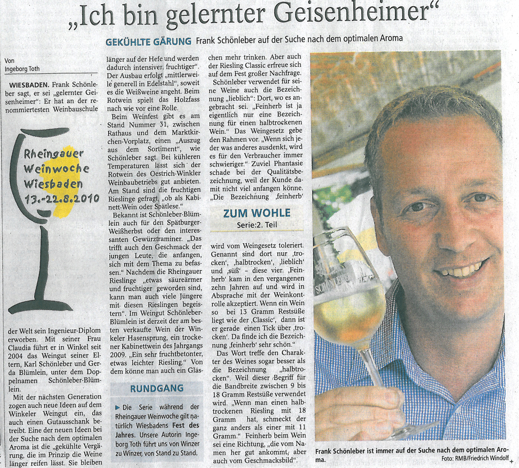 Beitrag im Wiesbadener Tagblatt anläßlich der Wiesbadener Weinwoche 2010.